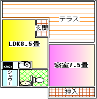 HOME 部屋 Aタイプ Bタイプ 設備 予約 観光 アクセス ご予約・問い合わせ 南信州の貸別荘/コテージ Bタイプ間取り図 ※間取り図は一例となっております。 洋 室 リビング・ダイニング(フローリング) 1室8.5畳 居間兼寝室(フローリング) 1室7.5畳シャワー 1室洗面所 1箇所トイレ 1箇所(洋式・水洗式)テラス